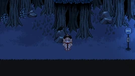 This is the first area Lacie finds herself after getting off the bus. There is a small bus stop and a crow on a rock. The road loops in both directions, making north the only way to go.